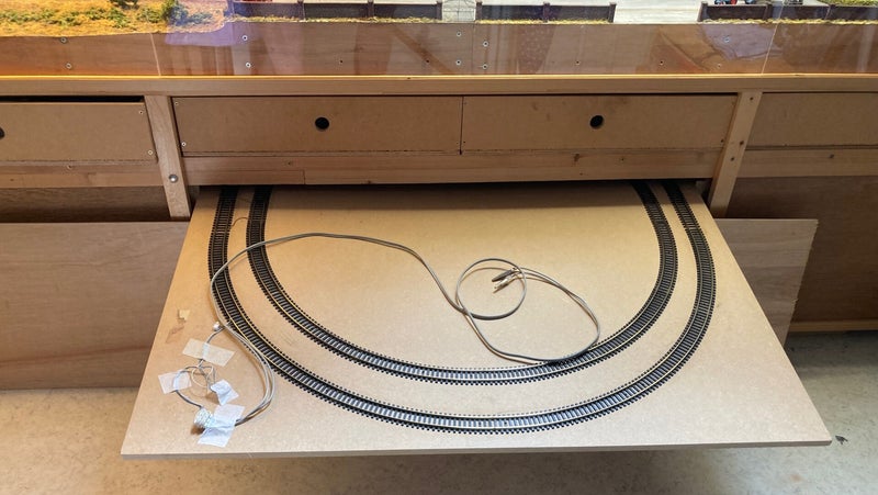 Het proefbaantje wordt m.n. gebruikt bij nieuwe aanwinsten en bij het (her)ijken van de snelheid van digitale locs. Het baantje kan aangesloten worden op een trafo of aan de digitale stroomvoorziening. Als het niet wordt gebruikt, ligt het opgeborgen onder de baan.