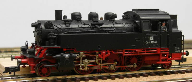 Het proefkonijn daarvoor is een BR 064 389-0. Oorspronkelijk was dit de BR 64 335 en deze is op oudjaarsdag in 1995 aangeschaft. Later is besloten mij bij de bouw van een modelbaan toe te leggen op tijdperk 4a en ben vervolgens op zoek gegaan naar een kap met dit computernummer. Deze oudere kap (uit de jaren '70) is geplaatst op een moderner, verfijnder uitgevoerd onderstel van de 64 335. Dat kan zonder 'gedoe'. De kap, is op de bedrukking na, identiek.