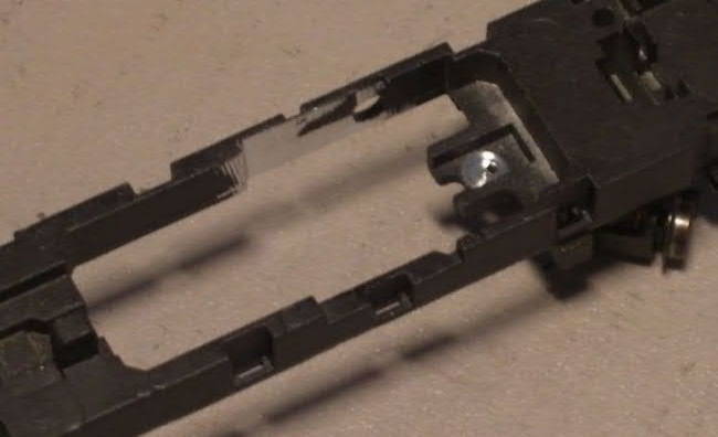 Freeswerk aan het motorhuis is niet nodig. De motor kan er zo ingelijmd worden. Wel een beetje op de tast, want de tandwielen aan de andere zijde zijn afgedekt.