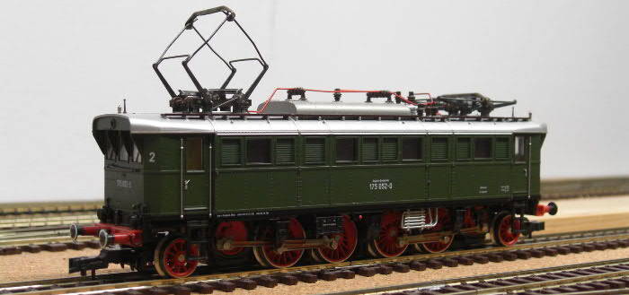 Ondanks deze opsomming van ontbrekende zaken is deze E 175 een mooi apparaatje. Deze matgroene ‘altbau’ E-loc heeft een fraai uiterlijk met vele kleine details en een haarscherpe bedrukking. De trapjes zijn deel van het chassis. De loopwielen en bewegen mee bij uitslag in bogen.
