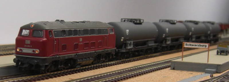 De BR 216 005-9 is een model uit 1991. In de standaard uitvoering is dit een erg lawaaiig machientje. De Hamo wielen van deze loc zijn Roco-line proof. Deze ratelen niet over deze rail.